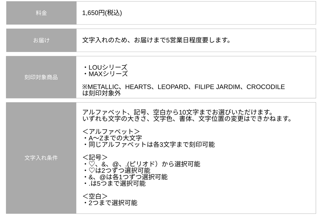 ※各商品のページにある「刻印する」からもオーダーが可能となっております。