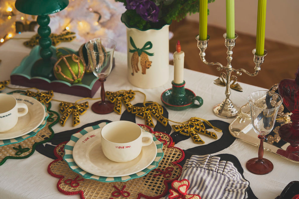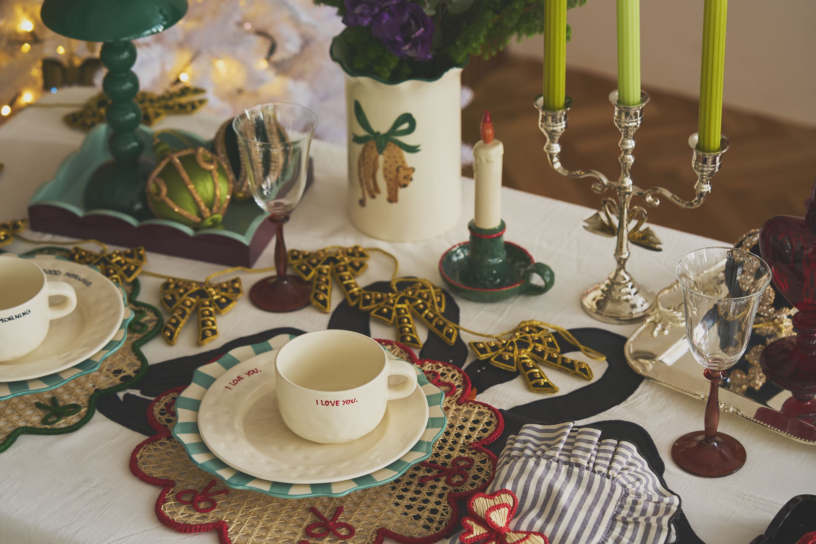 ハンドペイントの陶器やガラス製品、鮮やかなアート作品など、大胆かつ魅力的なテーブルコーディネートに必要なアイテムが揃っており、ホームウェアの他に、ジュエリーやファッションも幅広く取り扱っています。