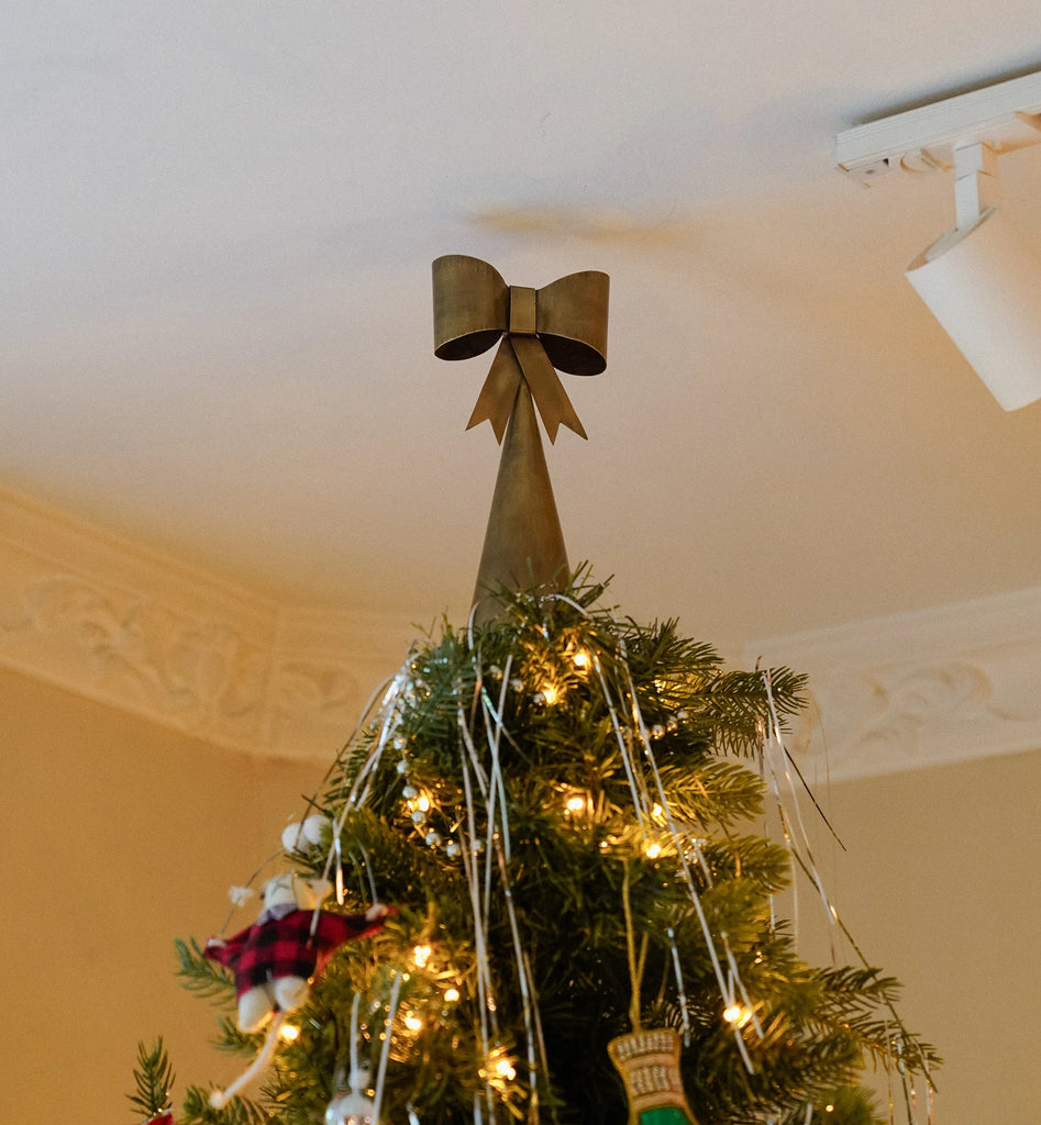 ツリーの頂上を飾る、リボンモチーフのツリートッパー。