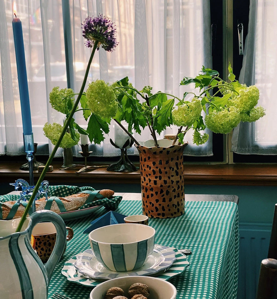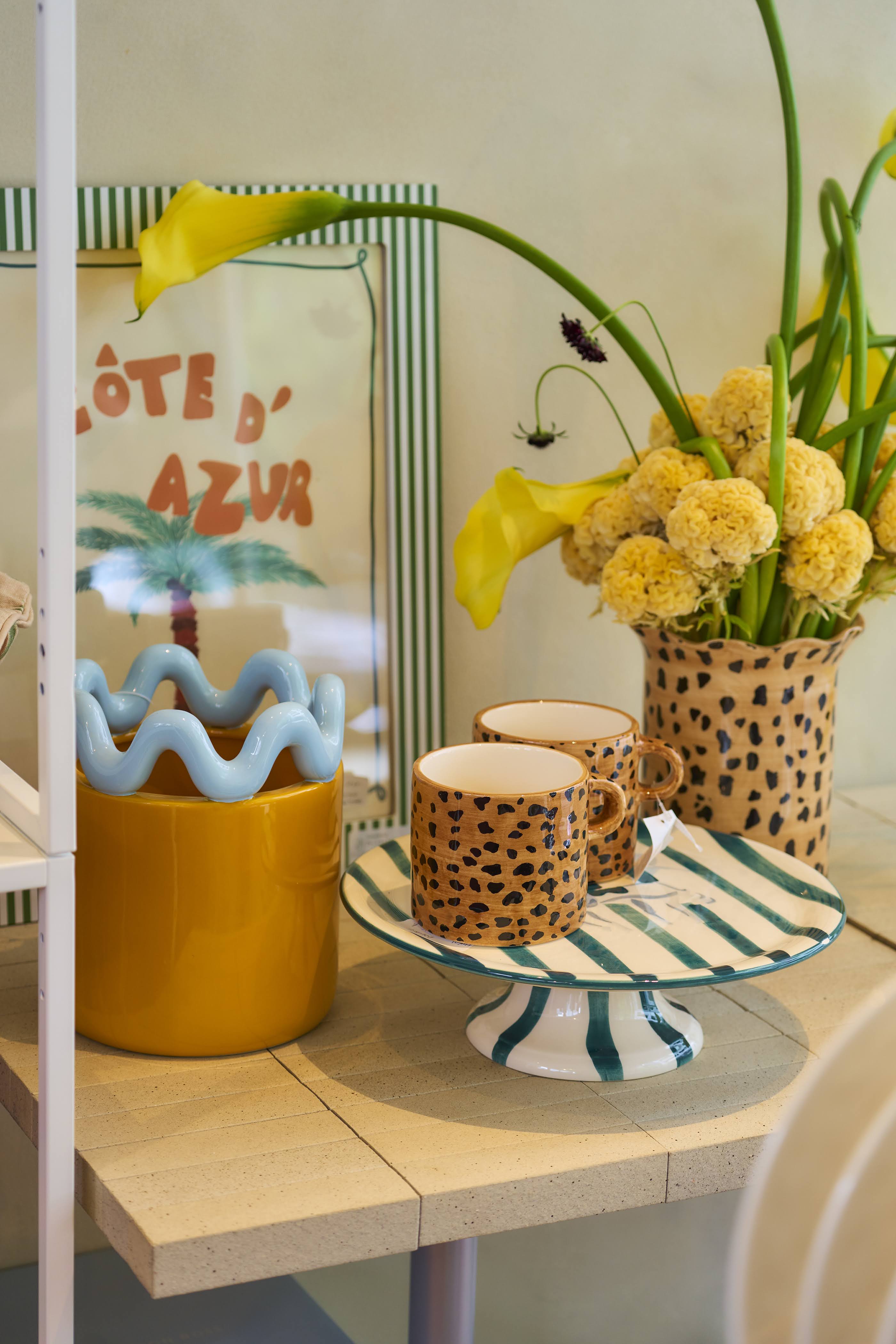ハンドペイントの陶器やガラス製品、鮮やかなアート作品など、大胆かつ魅力的なテーブルコーディネートに必要なアイテムが揃っており、ホームウェアの他に、ジュエリーやファッションも幅広く取り扱っています。
