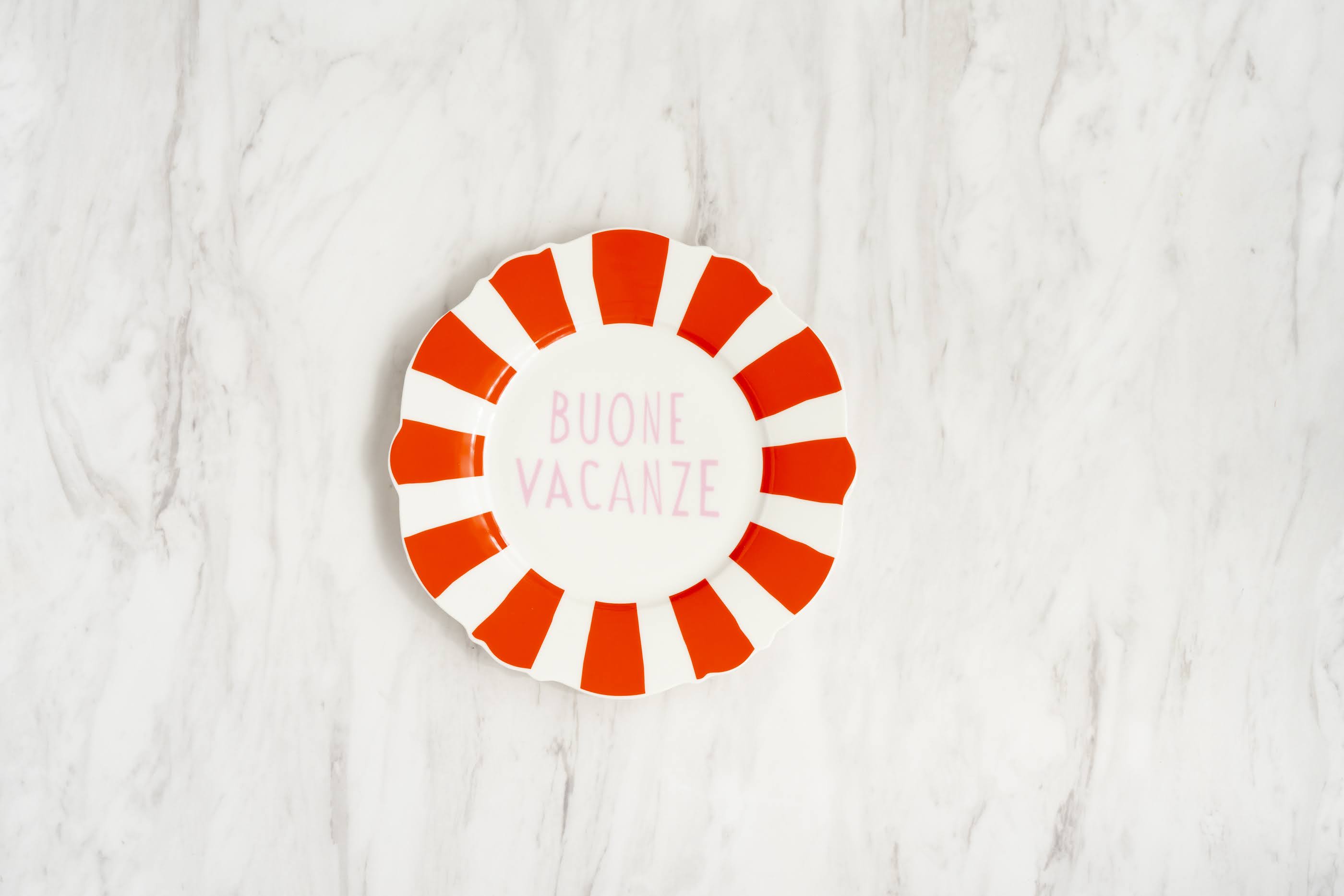 人気のイタリア語がデザインされたカラフルなウェーブ・デザートプレート。