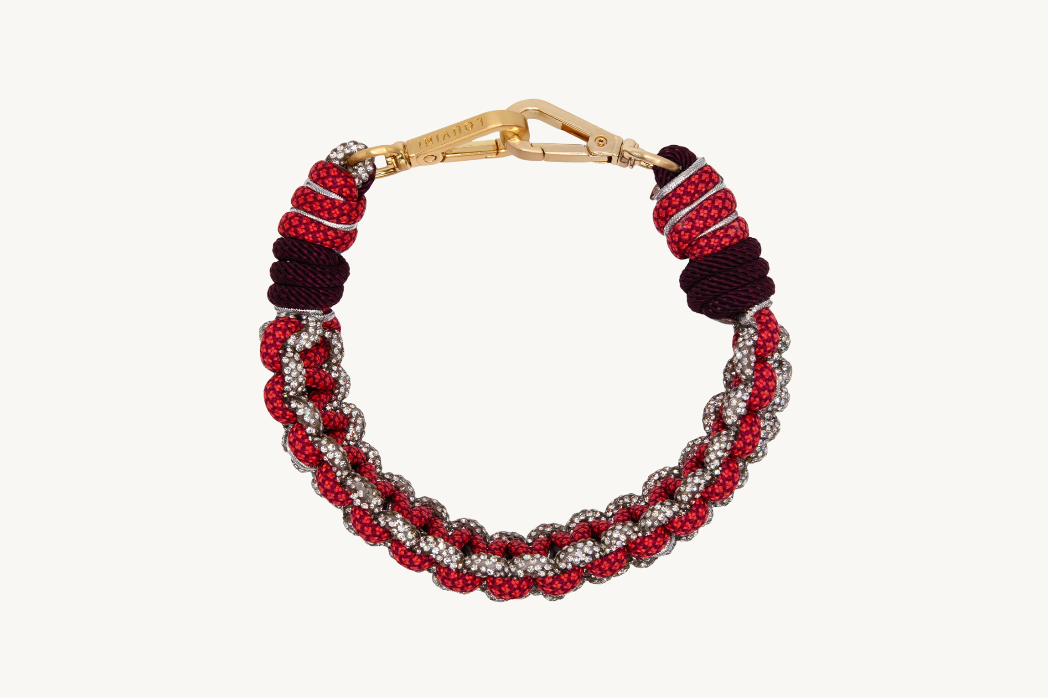 2本のカラーコードとグリッターコードを丁寧に編み込んだ、華やかでファッション性の高いストラップ。