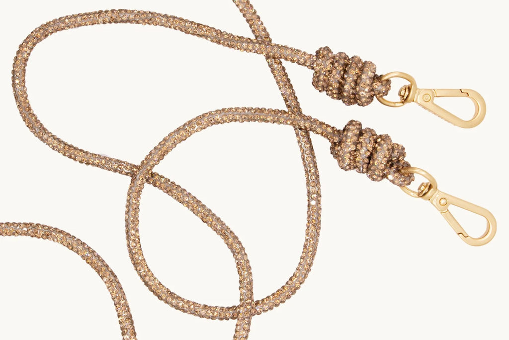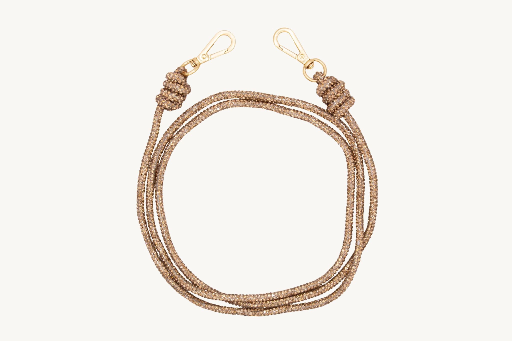 全体がグリッターで装飾されており、直径4mmとスマホチェーンの中でもスリムなことが特徴的でエレガントで洗練された印象を与えます。