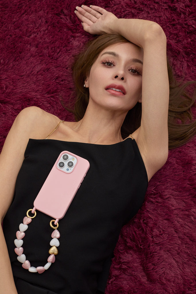 【LOUVINI】 ハンドストラップ PETIT CUORE PINK-WHITE