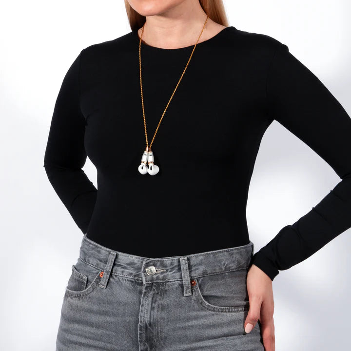 エレガントな輝きを放つLEAチェーンは、AirPodsをしっかりとホールドしながら、音質を損なわないように設計された特別なアクセサリーです。