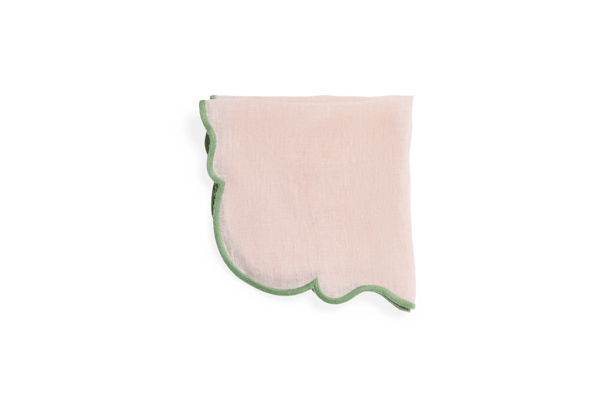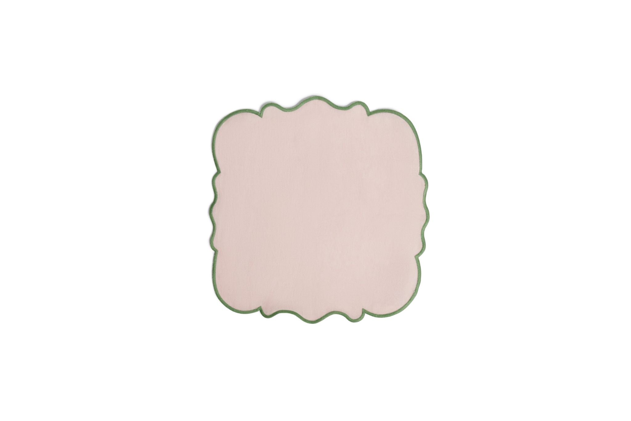 ピンクとグリーンのバイカラーがポイントのスカラップ型のナプキンです。