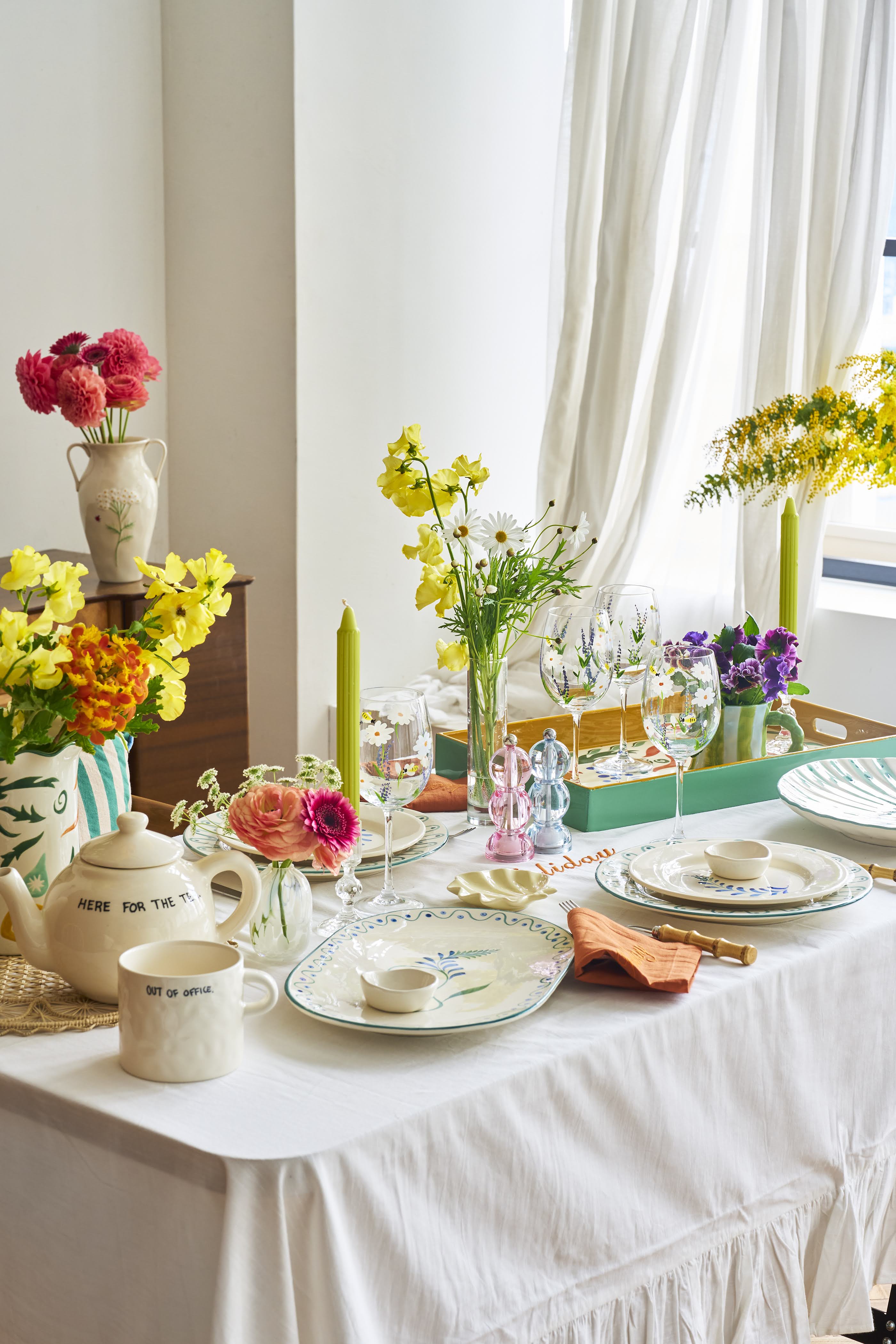 ハンドペイントの陶器やガラス製品、鮮やかなアート作品など、大胆かつ魅力的なテーブルコーディネートに必要なアイテムが揃っており、ホームウェアの他に、ジュエリーやファッションも幅広く取り扱っています。